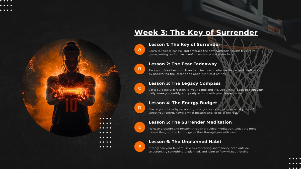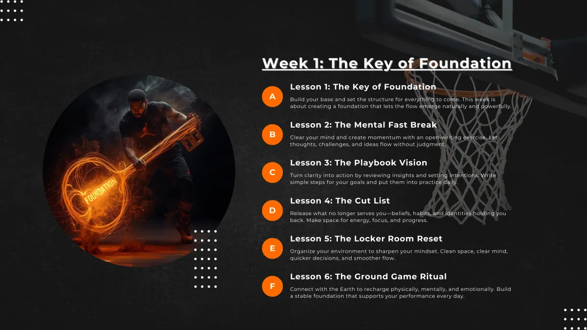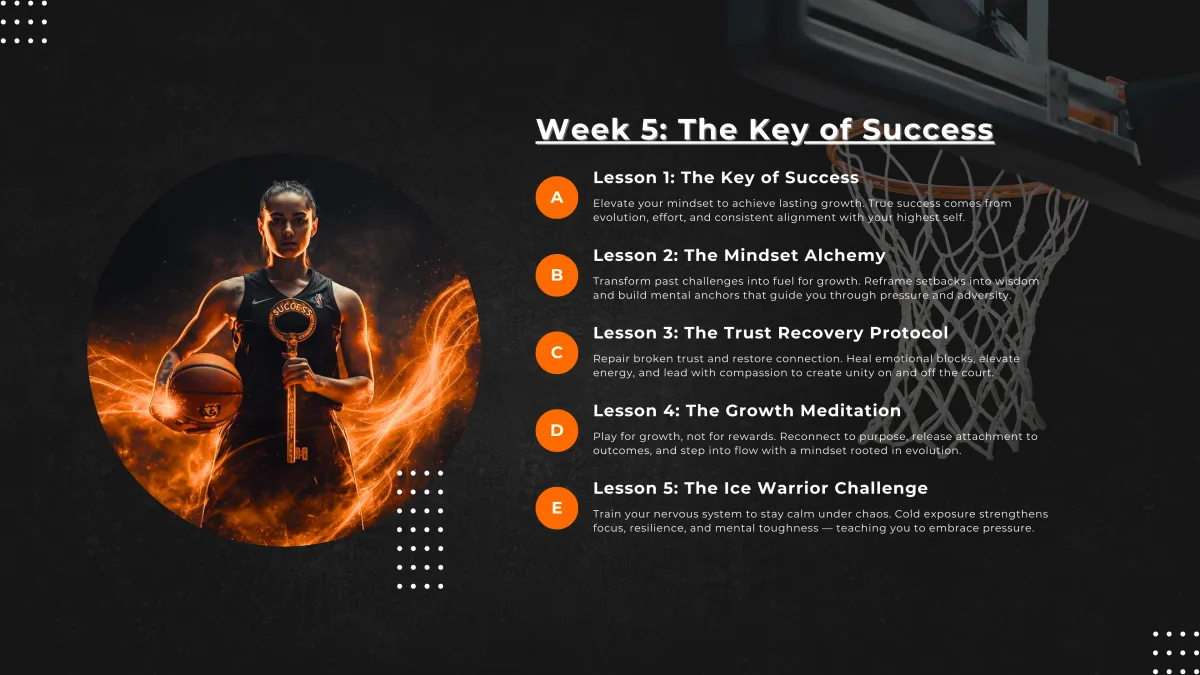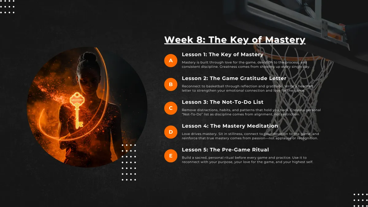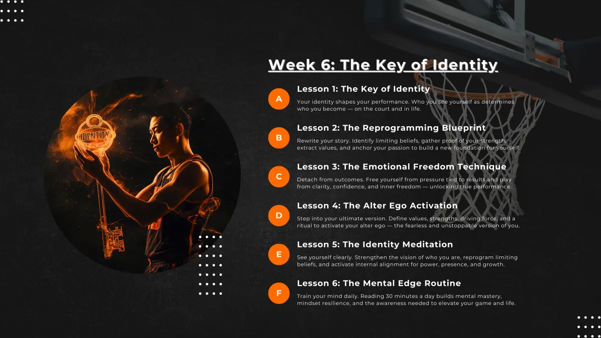 Mental, emotional, and spiritual blueprints built through 20,000+ hours perfecting performance—designed to dominate your career, unleash your presence and secure new contracts all while mastering the game you love.